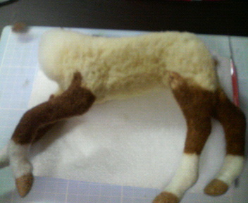馬本体は完成しましたが・・・、今回は見ての通り駆歩(かけあし)の1コマなので、自立できないポーズになっています。