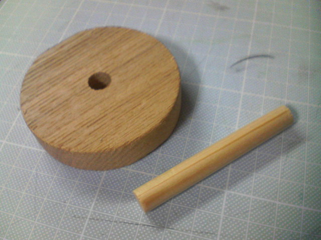 色々な形にカットされ、中央に直径10mmほどの穴があいた板と、丸い棒などの工作用のパーツ類。それを利用して作ってみる事にしました。