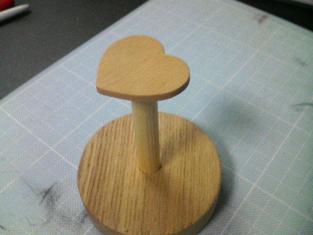 あとは支柱の上に取り付ける「馬体を支える部分」をどうしようか悩んでいたら、小さなハート形にカットされた板を発見。それを上部に取り付ける事で馬体との接触部分が大きくなるので、より安定度が増すであろうと計算。
