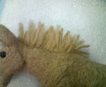 毛糸を適度に切って首筋に「たてがみ」を、顔面には「前髪」を、お尻にはシッポを植毛します。
