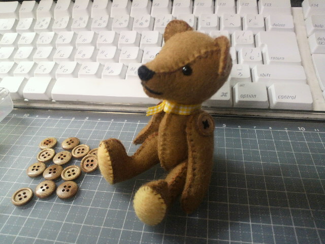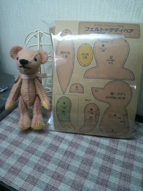 現在製作中ですので写真はしばらくお待ちくださいませ。続いては、フェルトでつくるテディベアのキット。正式名は「4ボタンジョイントでつくるフェルトのテディベア」にしました。