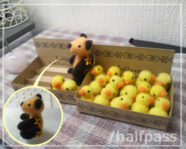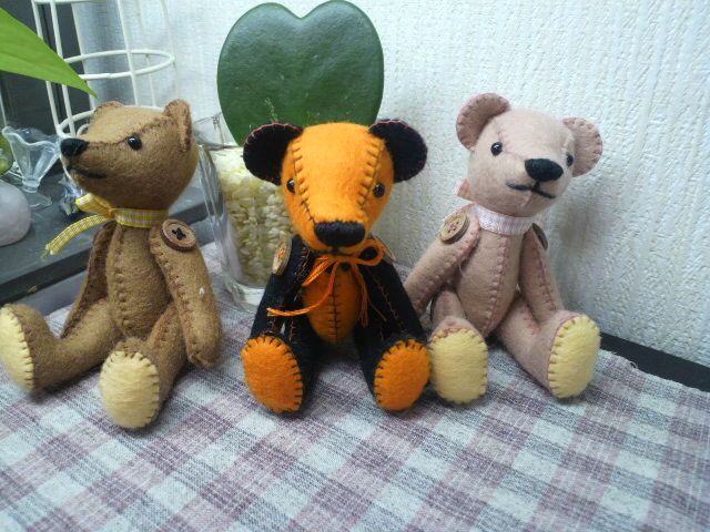 左の箱に入ってるのは、ハロウィン仕様のニードルフェルティングによるベアさん(手足のジョイント用のボタンが黄色い星になっています!)