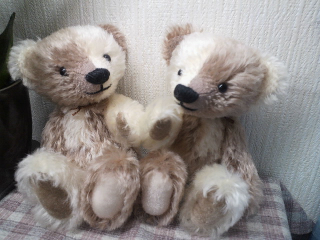 こちらの双子のチェックベアは、別々の里親さんの元へ。