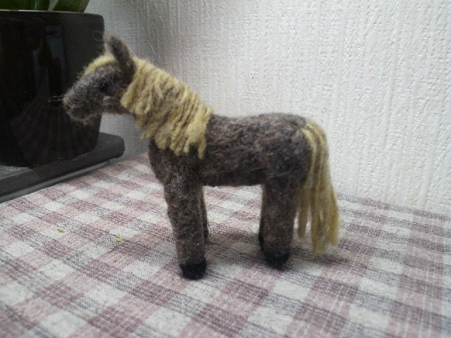 営業部長代理を作っていなければもう少し、猫とかベアを作って行けたかなあ?なんて思いましたが、「フェルトでもここまで作れる!」という(馬好きな自分の自己満足のためにも)表現力の高さを宣伝するための大事な部長さんなので、やっぱり作って行って良かったなって思いました。